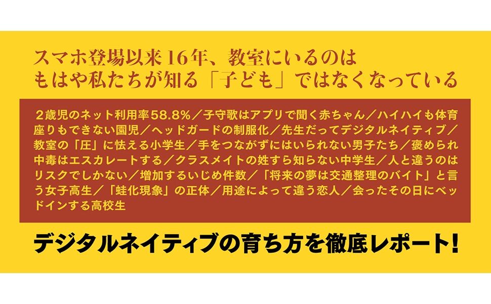 児童に関する問題を丹念に追ってきた著者がデジタルネイティブの育ち方を徹底レポート。