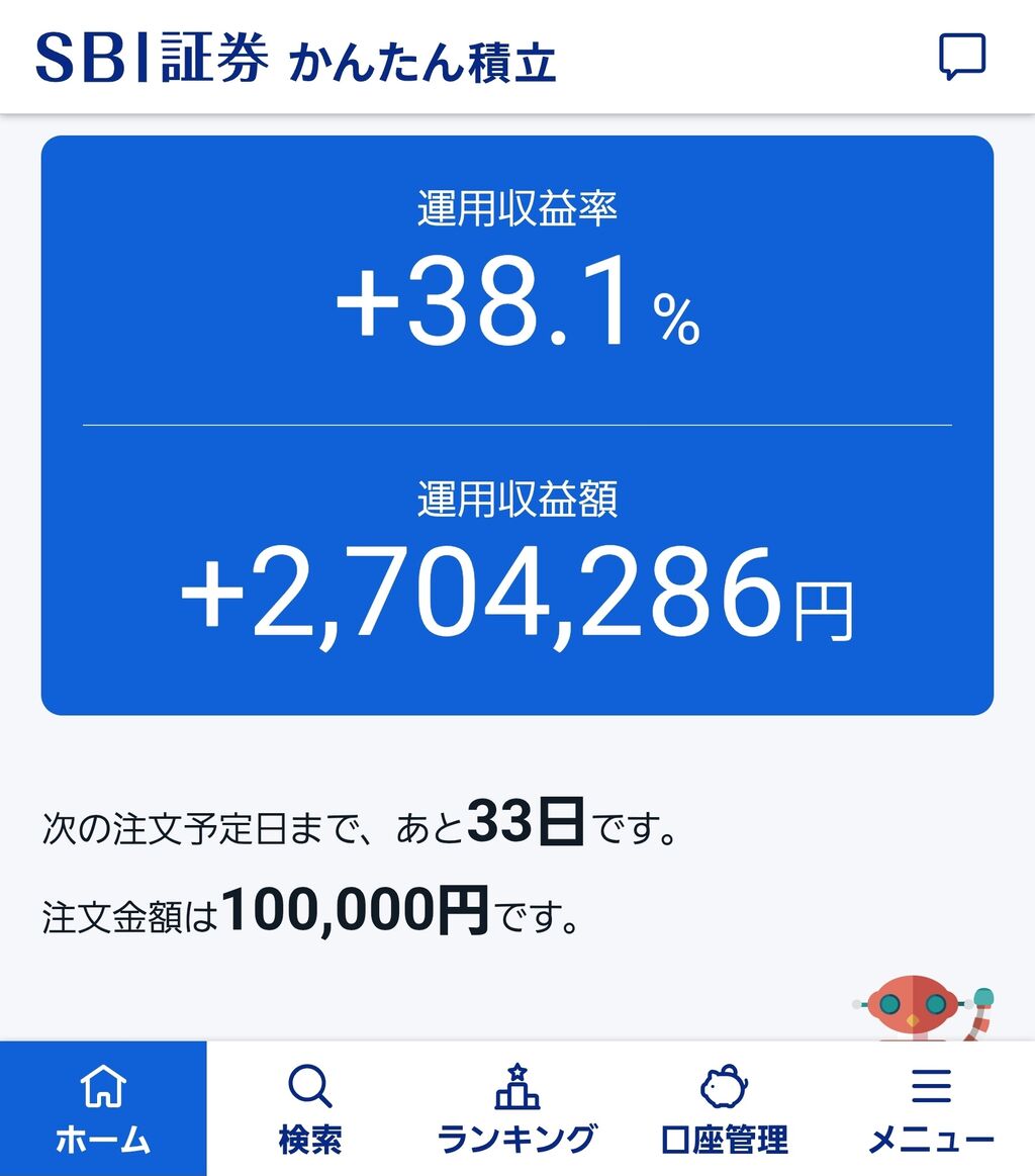 わいもNISA始めてから2か月くらいやけど100万ぐらい利益出てびっくりしたで